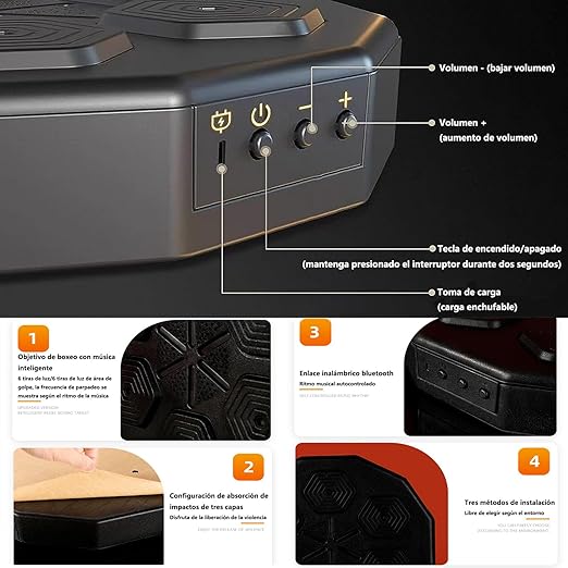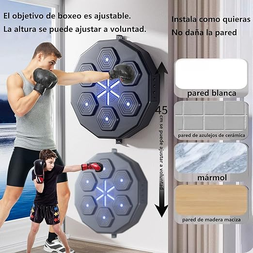 Transforma cualquier espacio en tu propio ring con esta máquina de boxeo de pared inteligente, equipada con luces RGB, sonido envolvente 3D y conectividad Bluetooth. Diseñada para mejorar tus reflejos, coordinación y estado físico de forma divertida e interactiva.